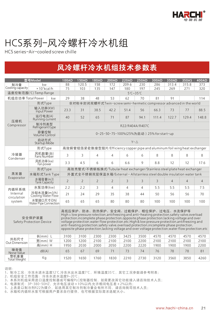 產(chǎn)品特點(diǎn)Features: 1、采用國際最先進(jìn)的半封閉螺桿壓縮機(jī),電機(jī)、壓縮機(jī)一體化,無軸封滲漏之慮;電器及制冷系統(tǒng)原器件全部為世界著名品牌; 2、壓縮機(jī)容量控制采用多段式或無段式,提供更大范圍的制冷量,載何性能好,穩(wěn)定性和可靠性更高,更加節(jié)省能源,壓縮機(jī)采用卸載降壓啟動(dòng),避免對電網(wǎng)的沖擊; 3、機(jī)組可根據(jù)負(fù)荷的需求,實(shí)行智能化程序控制:100%、75%、50%、25%(或啟動(dòng))、0,通過四段空調(diào)式連續(xù)卸載容量控制系統(tǒng),更節(jié)省能耗; 4、采用德國“SIEMENS”PLC可編程觸摸控制器,人機(jī)界面全中文顯示,動(dòng)畫顯示機(jī)組系統(tǒng)各部運(yùn)轉(zhuǎn)狀態(tài),可進(jìn)行參數(shù)設(shè)定、能量模擬控制、故障查詢等多重保護(hù)功能,保證機(jī)組安全穩(wěn)定運(yùn)行; 5、風(fēng)冷冷凝器全部采用進(jìn)口風(fēng)機(jī)及大風(fēng)量低噪音軸流設(shè)計(jì),換熱效率更高;風(fēng)冷系統(tǒng)無需配置冷卻水塔及冷卻水泵,安裝簡單,移動(dòng)方便,適合生產(chǎn)場地比較緊缺的環(huán)境使用; 6、水冷系列需要配置冷卻水塔及冷卻水泵,冷水機(jī)放置在室內(nèi),噪音比較低,制冷效果更好,應(yīng)用于通風(fēng)散熱不是很好的環(huán)境; 7、為保證使用安全,機(jī)組內(nèi)置漏電保護(hù)器、相位保護(hù)、過載保護(hù)、電流保護(hù);系統(tǒng)安裝了高、低壓保護(hù)傳感器,為防止缺水或循環(huán)水系統(tǒng)內(nèi)部結(jié)冰,機(jī)組安裝了流量開關(guān)和低液位保護(hù)裝置。 8、螺桿冷水機(jī)組使用壽命長,穩(wěn)定性好,無故障運(yùn)行可達(dá)4萬小時(shí)以上。